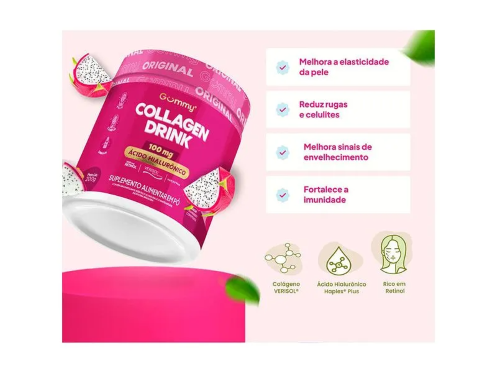 O Gummy Collagen Drink é uma bebida funcional que combina colágeno com sabores frutais de cranberry e pitaya ou maçã verde. Este produto é ideal para quem deseja promover a saúde da pele, cabelos e unhas de dentro para fora.