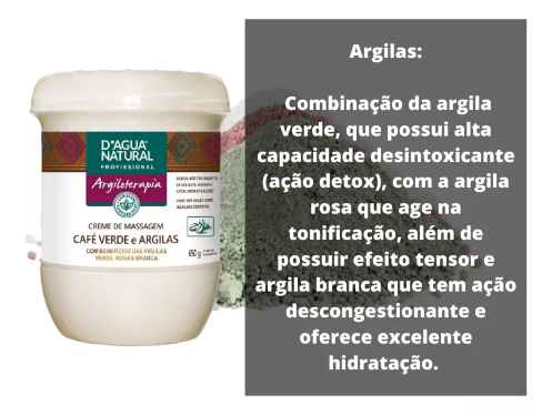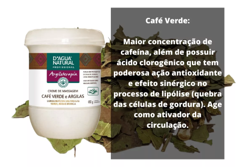 Creme indicado para massagens tonificantes, com extrato de café verde, que estimula a circulação e melhora a aparência da pele.