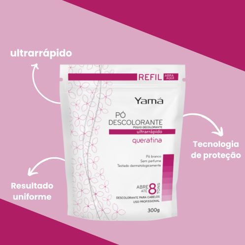 O Descolorante Yama oferece uma fórmula nutritiva que promove clareamento eficaz sem agredir os fios.