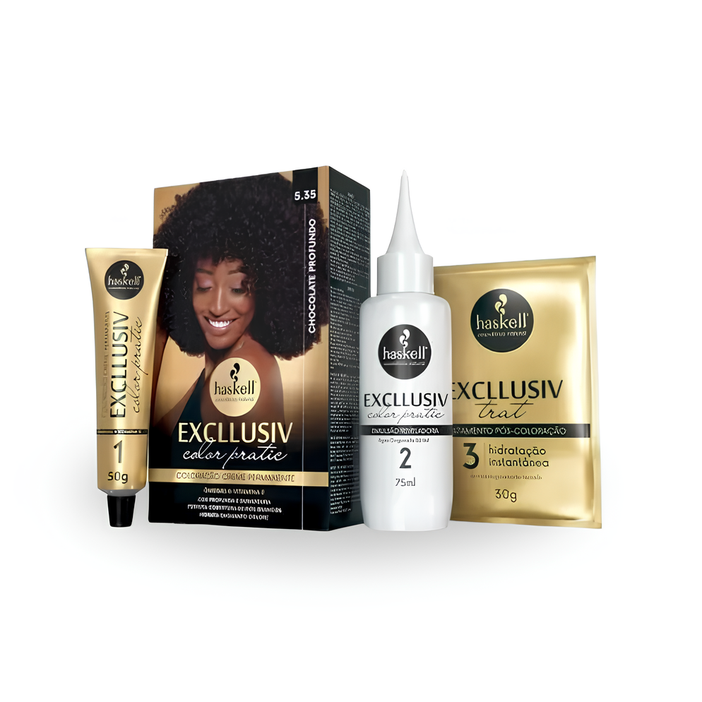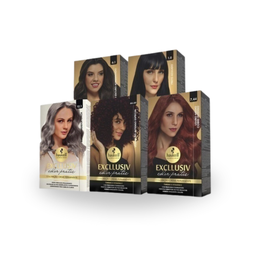 Kit completo de tintura que oferece cores vibrantes e tratamento para os cabelos.