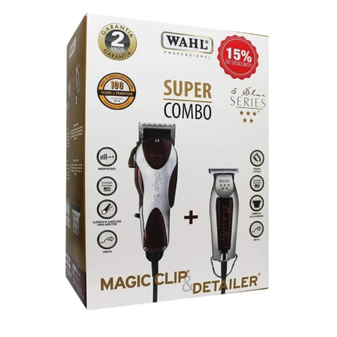 O Kit Wahl Magic Clip + Detailer é perfeito para cortes profissionais. Inclui a máquina de corte Magic Clip e a Detailer, ideal para acabamentos detalhados, garantindo cortes precisos e rápidos.