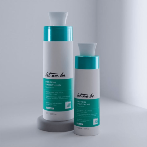 Shampoo e máscara que promovem a reconstrução da fibra capilar, deixando os fios mais fortes e alinhados.